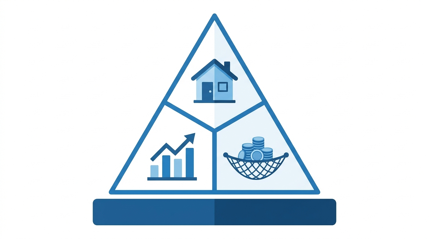 - 家+投資+現金の三角形——資産を1ヶ所に集中させない全方位防衛を